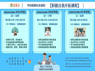 与孩子上了温馨苑的积极自我开拓课程后(成人班/学生班),我与孩子的生活都受益良多。这个课程真的让我们发觉了我们的潜能,并且课程所体会到的让我们更加了解自己,是一个一生受益的课程?