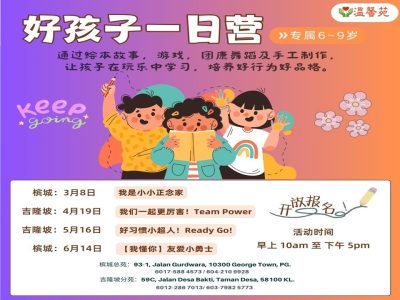 温馨苑,一个温馨的家。加入积极自我开拓课程好几年了,成长了不少。鼓励太太参与,我俩也成为爱心老师。间中也参与不少课程和活动,认识了好多志同道合的朋友。现在我俩的小朋友,也慢慢融入温馨苑大家庭了。温馨苑,加油!